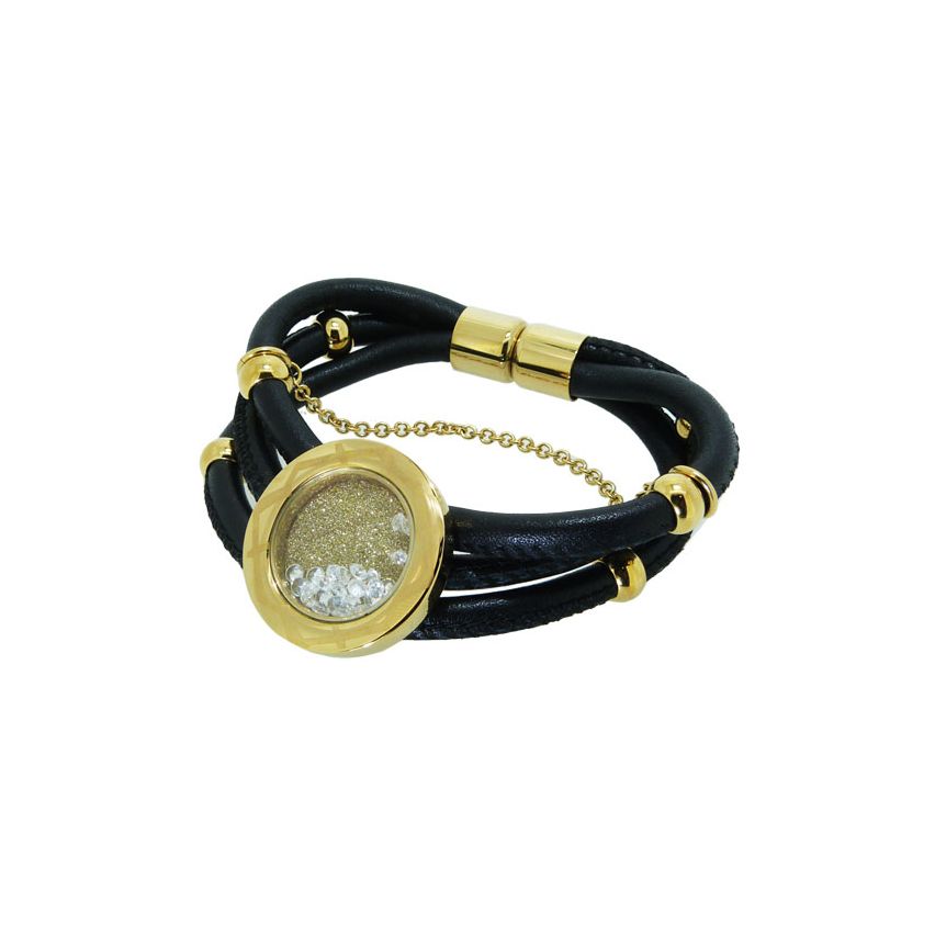Дамска гривна изработена от висококачествена медицинска стомана,проба 316L и кожа(изкуствена кожа)